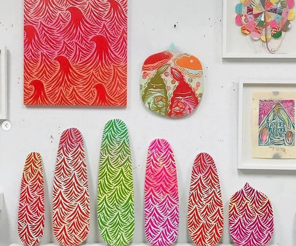 Outliers by Tim Kerr, Sandy Yang, and Steve Olson – A showing of bright paintings on skateboards, plexi and paper