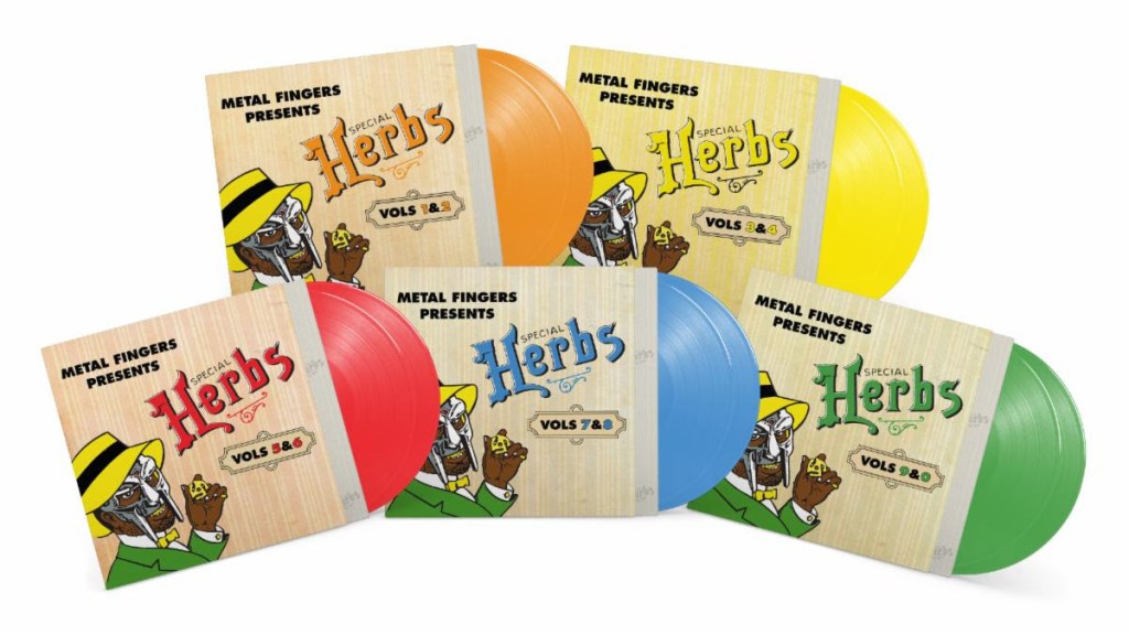 Metalface Records and Rhymesayers Entertainment are pleased to announce the re-release of MF DOOM’s Special Herbs collection, released under his Metal Fingers alias, on September 5th. The seminal collection has been repackaged for re-release on colored vinyl for the first time, with custom-built “rolling paper” gatefold jackets. The series has also been made available on CD with newly custom-built cases, as well as cassettes. Additionally, a merchandise capsule that includes shirts, sweatshirts, and a Super7 ReAction Figure are also offered with the collection. Pre-order is available now at gasdrawls.com.